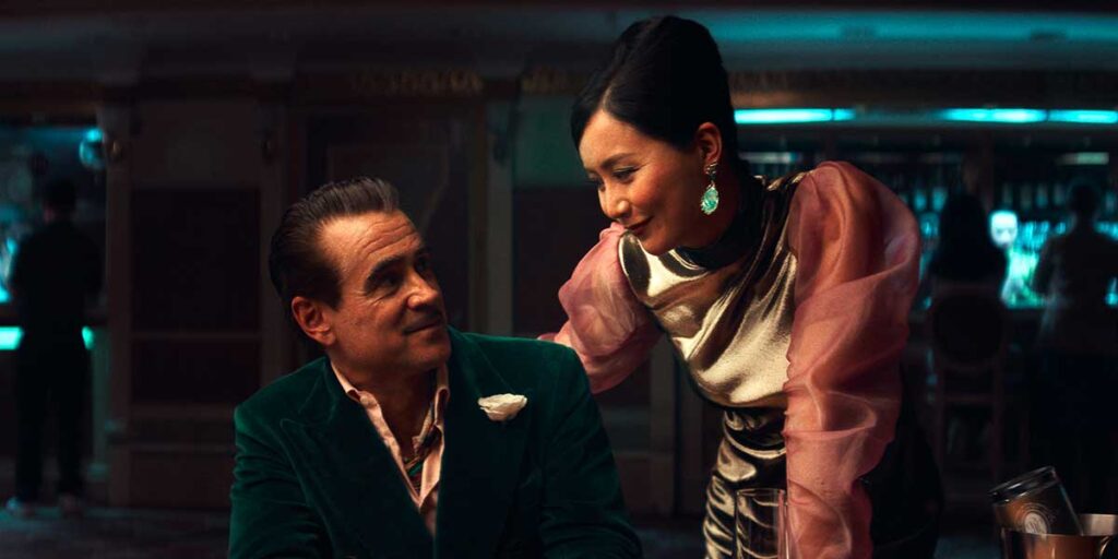 As he plays Baccarat with of the biggest players in the city of Macao, Lord Freddy Doyle meets a casino hostess Dao Ming, played by Fala Chen, who may be able to help him out. The two strike an interesting romance as they share simila backgrounds and monetary problems. She is seen more of a line of credit to the casino world but there are layers to who she is as Freddy figures out. While Freddy is chasing her, someone is else is chasing Freddy. Cynthia Blithe played by Tilda Swinton is on the hunt for the international high roller. Her mission is to make him stop running from his problems and to pay his dues. Nevertheless, Lord Freddy Doyle is trying to play the odds which is his luck is about to turn around for the better because he’s already been at rock bottom for time.